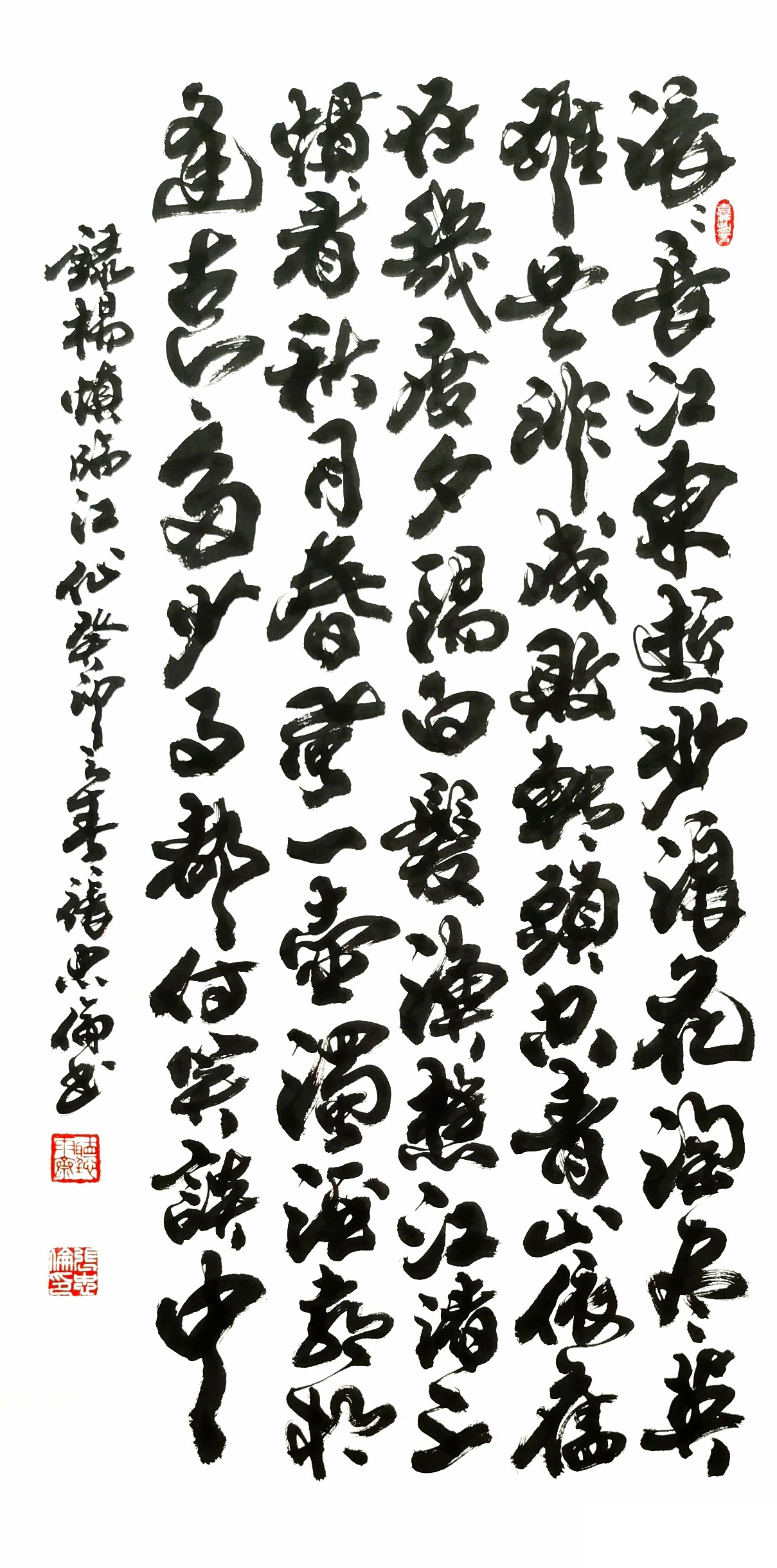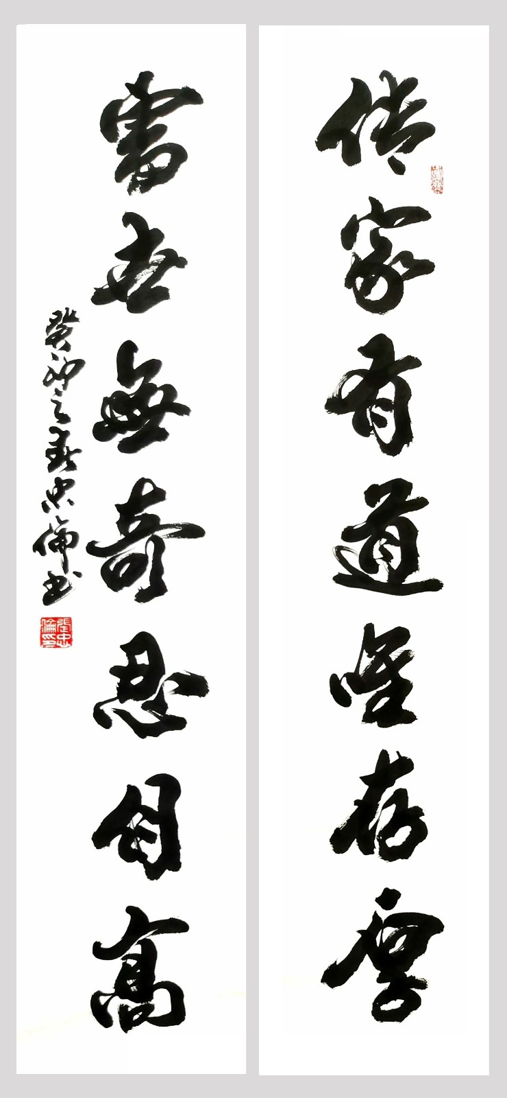 2023年作品,书法417《临江仙》138x68cm+对联《传家有道唯存厚,处世无奇忍自高》138x34cmx2 (3)