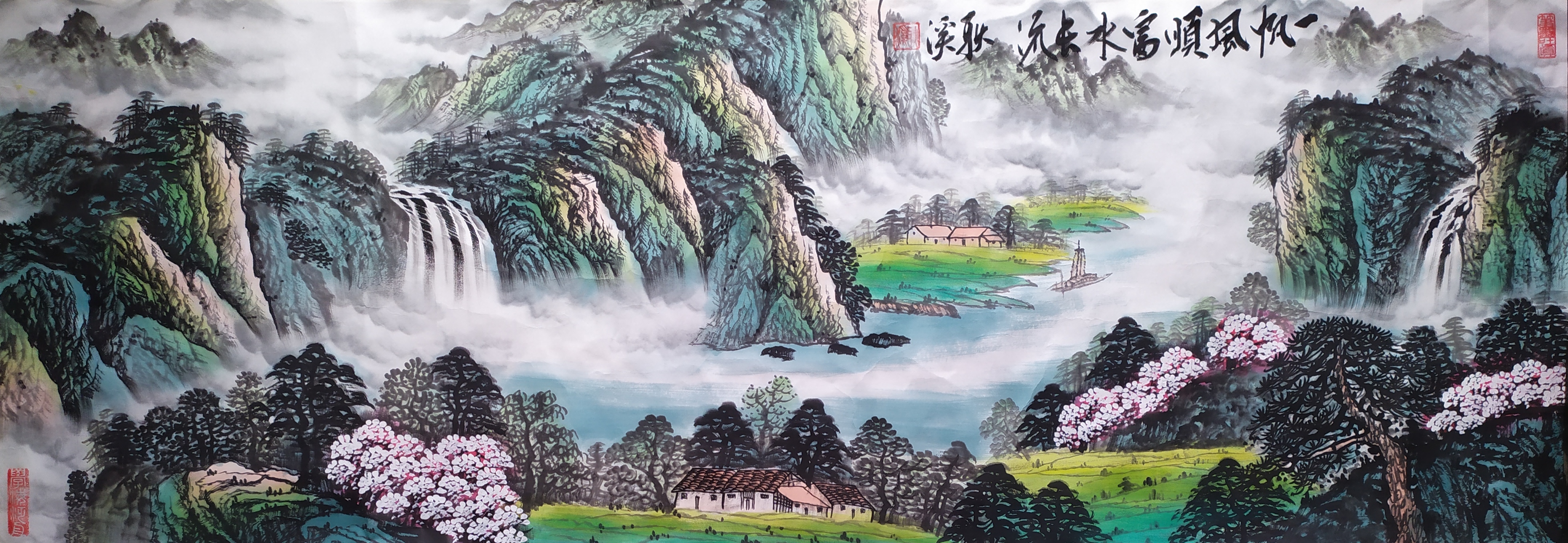 2023年作品,国画《一帆风顺富水长流》180x63cm