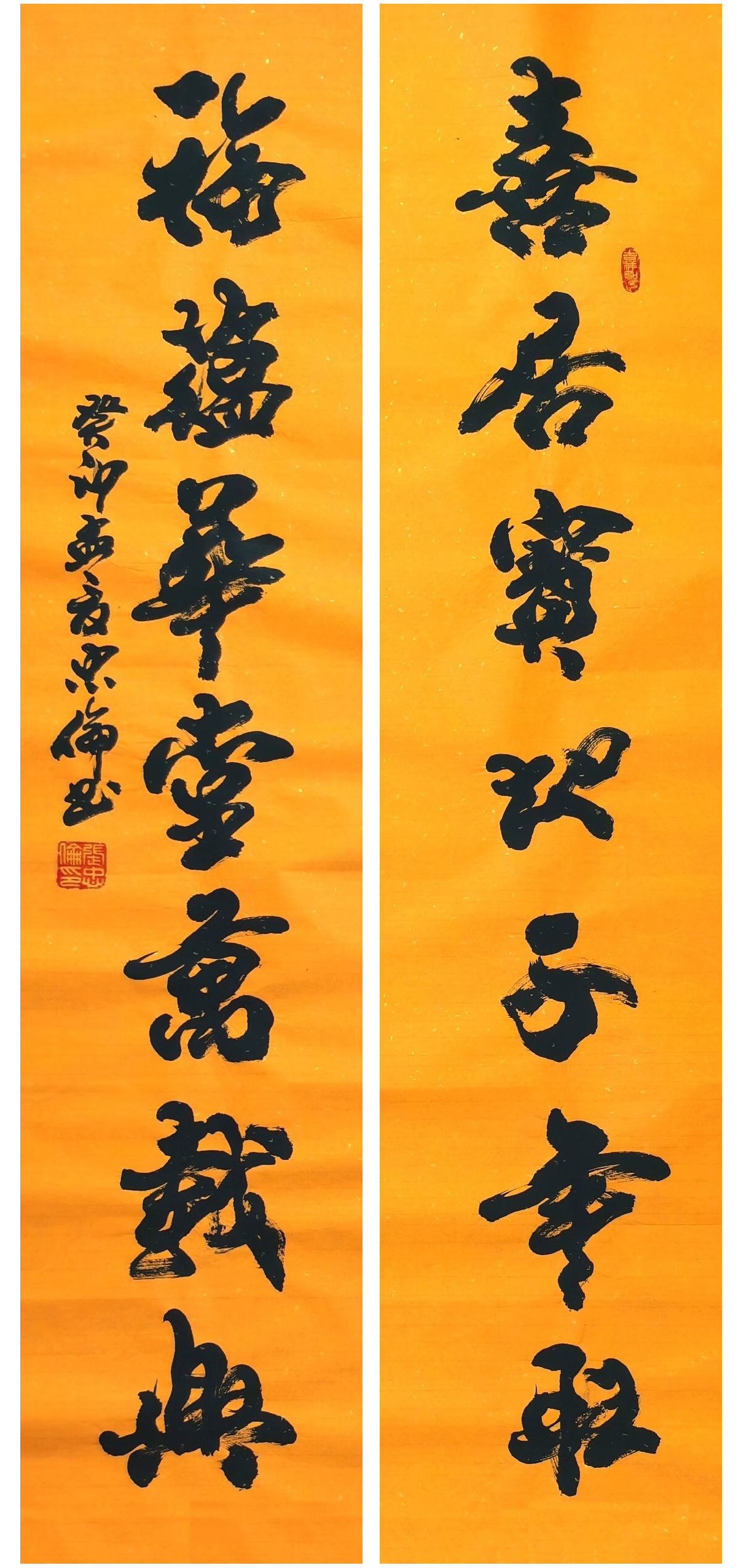 2023年作品,书法:厚德载福138x68cm+《喜剧宝地千年旺,福蕴华堂万载兴》138x34cmx2