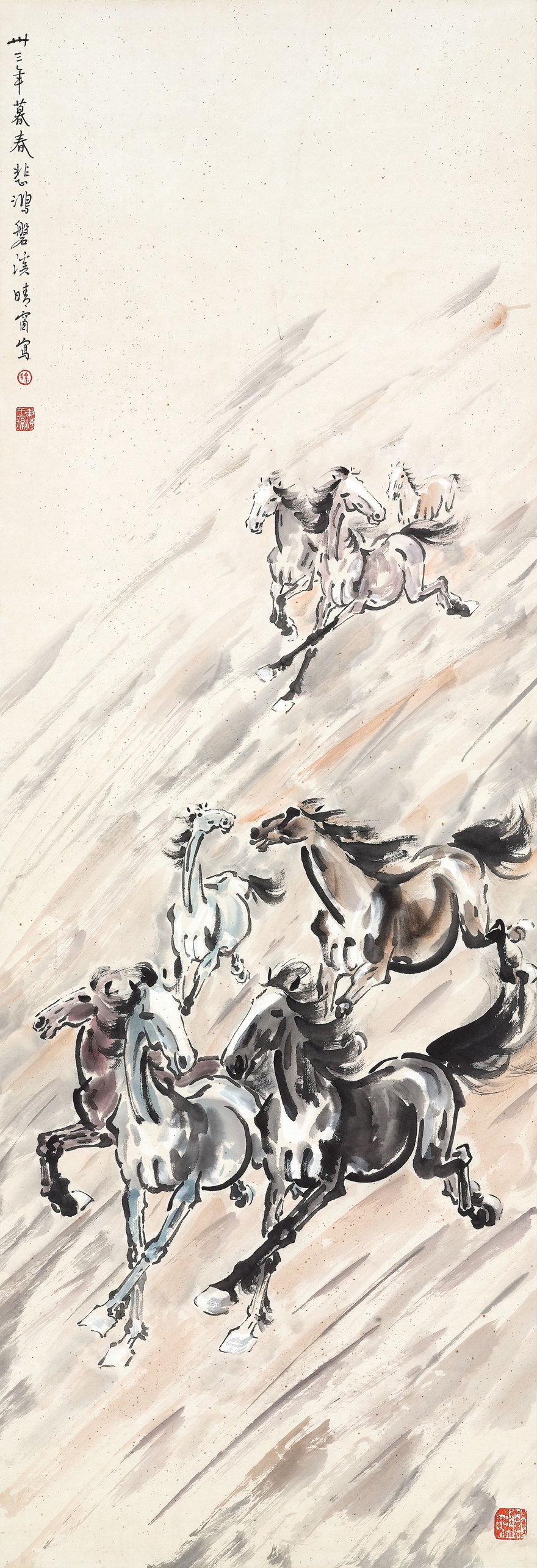 769 画册 徐悲鸿 八骏图 纸本设色立轴 136×47