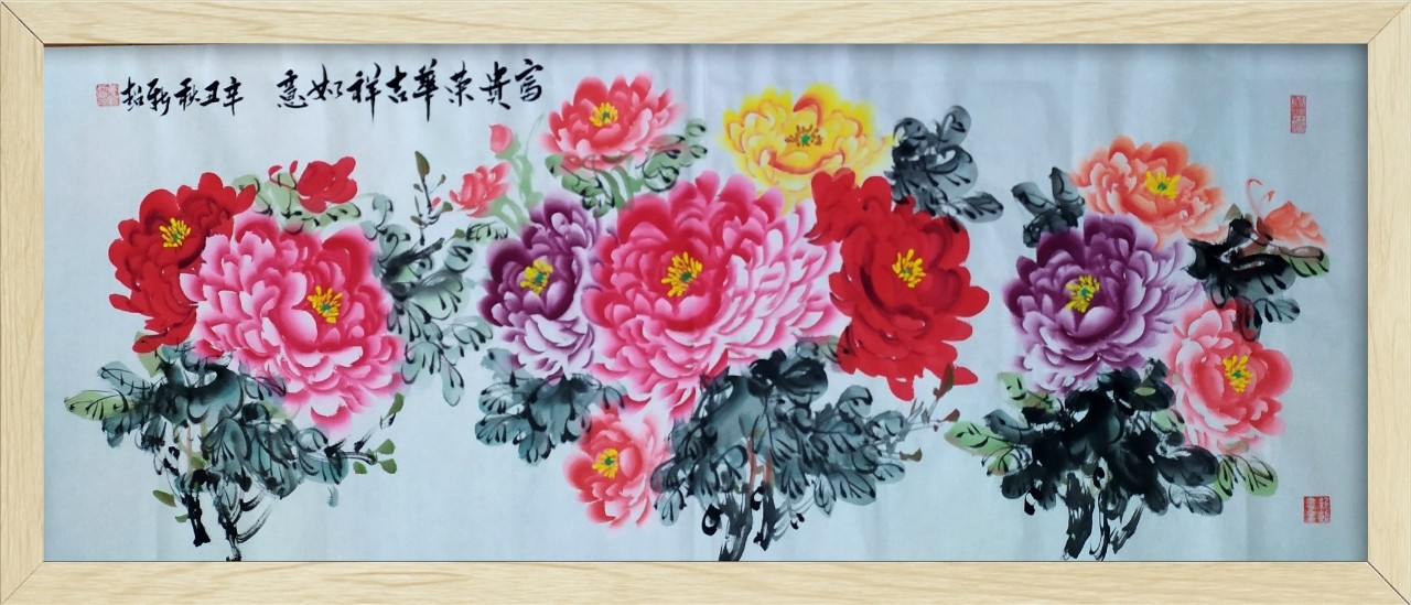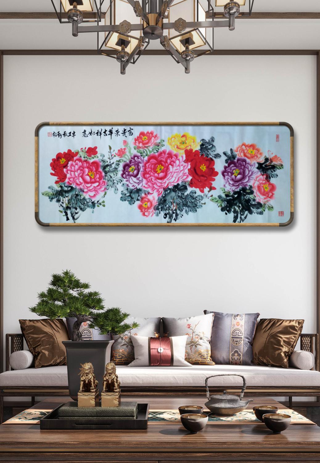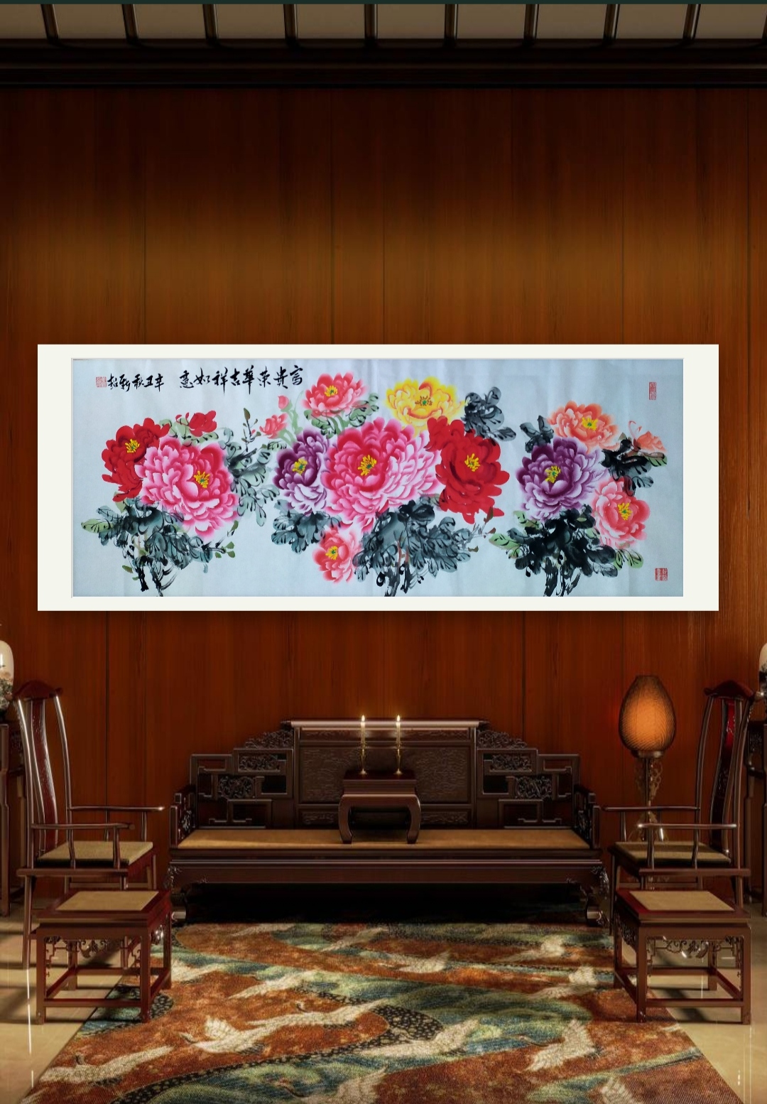 2021年作品,国画-牡丹《富贵荣华吉祥如意》180x70cm