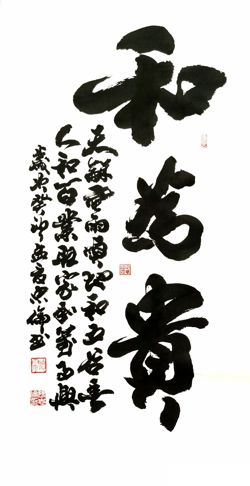 《和为贵》138x68cm+书法对联《人生哪能多如意,万事只求半称心》138x34cmx2