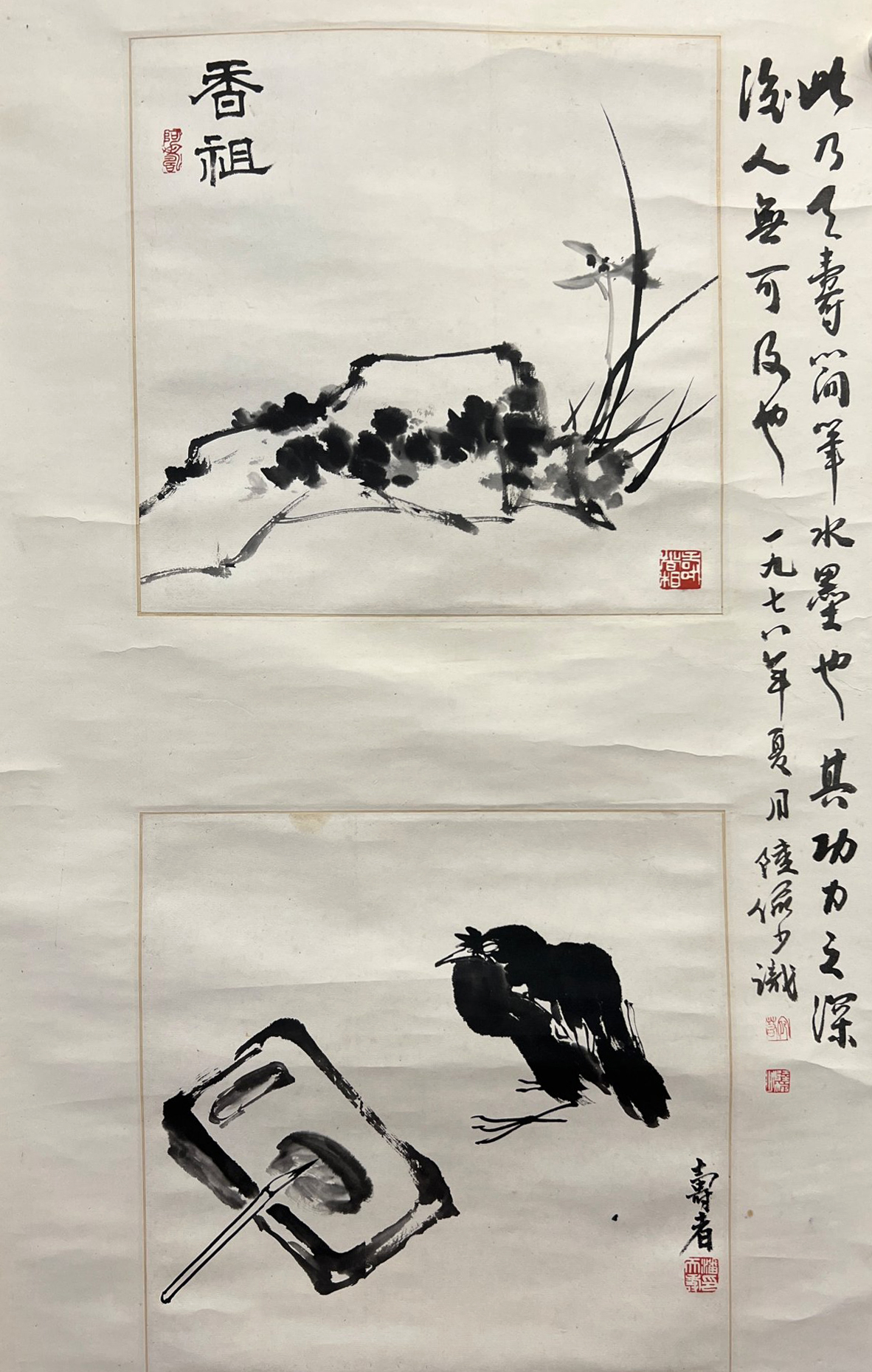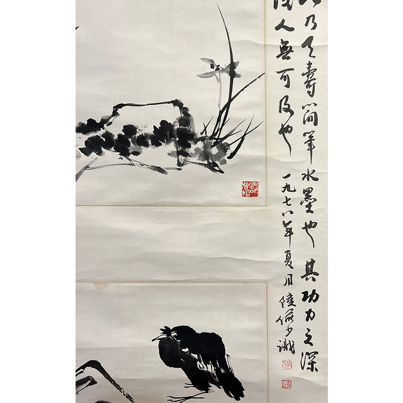 潘天寿(1897年3月14日—1971年9月5日),字大颐,自署阿寿 、寿者。中美协副主席,现代画家、教育家。浙江宁海人。1915年考入浙江省立师范学校,受教于经亨颐、李叔同等人。其写意花鸟初学吴昌硕,后取法石涛、八大,曾任中国美术家协会副主席、浙江美术学院院长等职。潘天寿精于写意花鸟和山水,偶作人物。尤善画鹰、八哥、蔬果及松、梅等。落笔大胆,点染细心。墨彩纵横交错,构图清新苍秀,气势磅礴,趣韵无穷。画面灵动 ,引人入胜。作品《露气》、《雨后千山铁铸成》、《记写雁荡山花》等均藏于中国美术馆;收编成辑有《潘天寿画集》、《潘天寿画选》、《潘天寿画辑》、《潘天寿书画集》等。