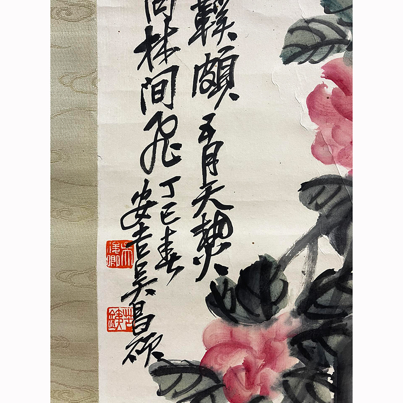 吴昌硕(1844年8月1日-1927年11月29日),初名俊,又名俊卿,字昌硕,又署仓石、苍石,多别号,常见者有仓硕、老苍、老缶、苦铁、大聋、缶道人、石尊者等。浙江省孝丰县鄣吴村(今湖州市安吉县)人。著名国画家、书法家、篆刻家,"后海派"代表,杭州西泠印社首任社长,与厉良玉、赵之谦并称"新浙派"的三位代表人物,与任伯年、蒲华、虚谷合称为"清末海派四大家"。他集"诗、书、画、印"为一身,融金石书画为一炉,被誉为"文人画最后的高峰"。在绘画、书法、篆刻上都是旗帜性人物,在诗文、金石等方面均有很高的造诣。