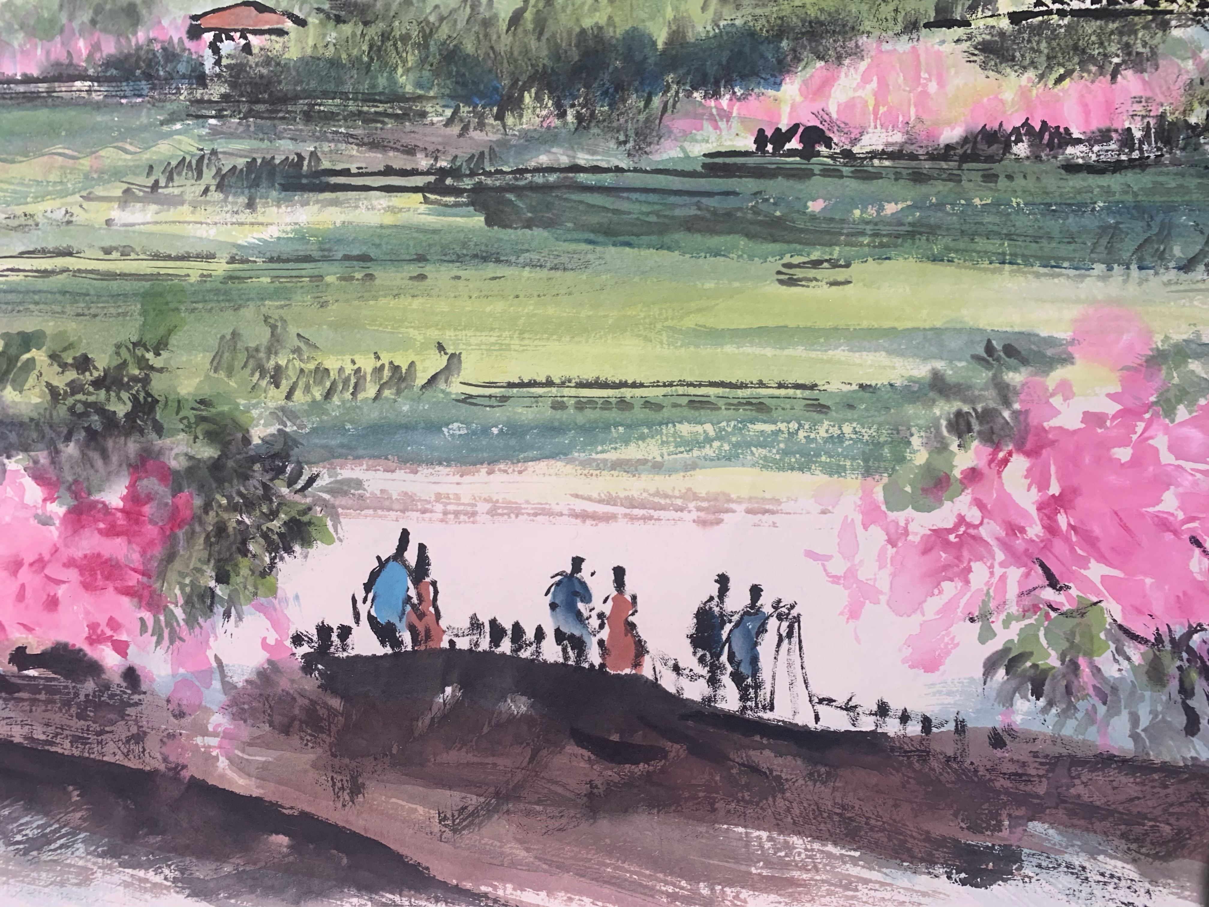 【作品介绍】已托片。作品是老师在宝岛写生创作的一幅精品,正值樱花浪漫之时,作者用自己的才情、激情抒发胸中丘壑,创作下笔落墨处雄浑、大气,色彩厚实、浓烈、清新,光影色墨结合巧妙、浓淡干湿展现得宜,给人们一种美的艺术享受。