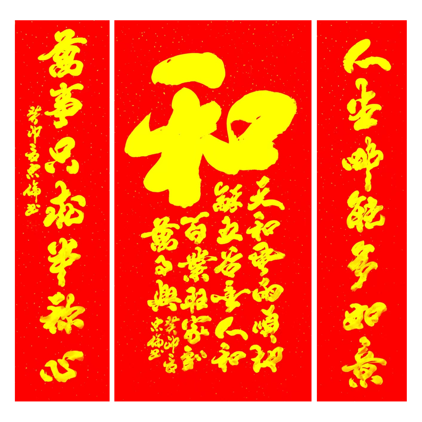 2023年作品,书法《和》138x68cm+对联《人生哪能多如意,万事只求半称心》138x34cmx2