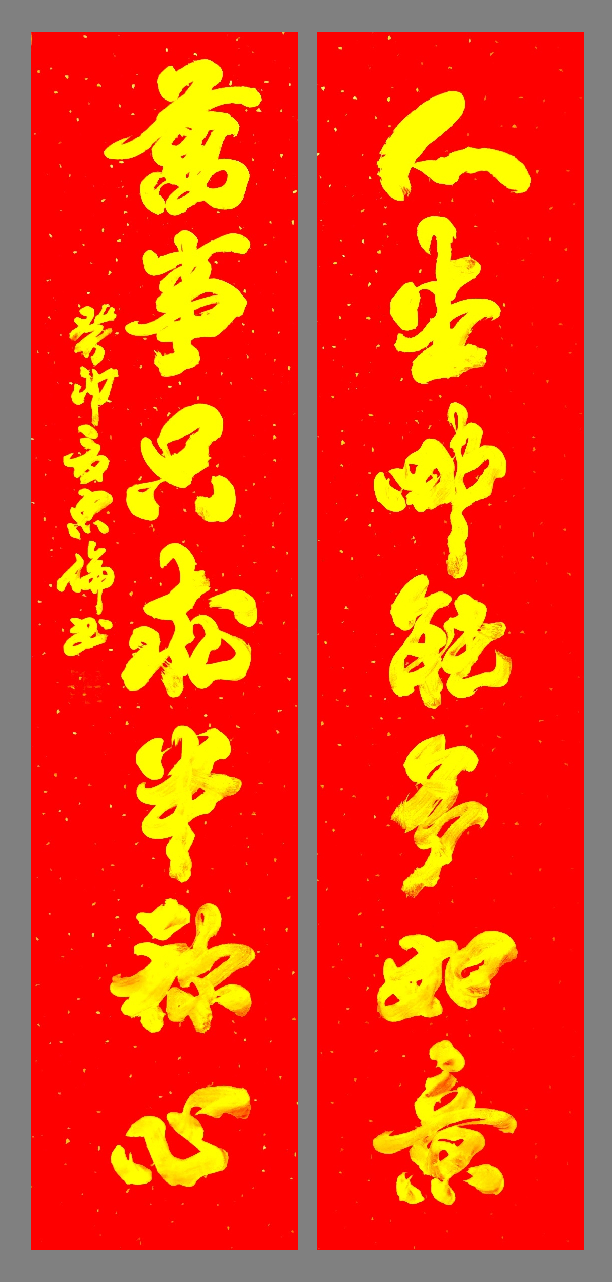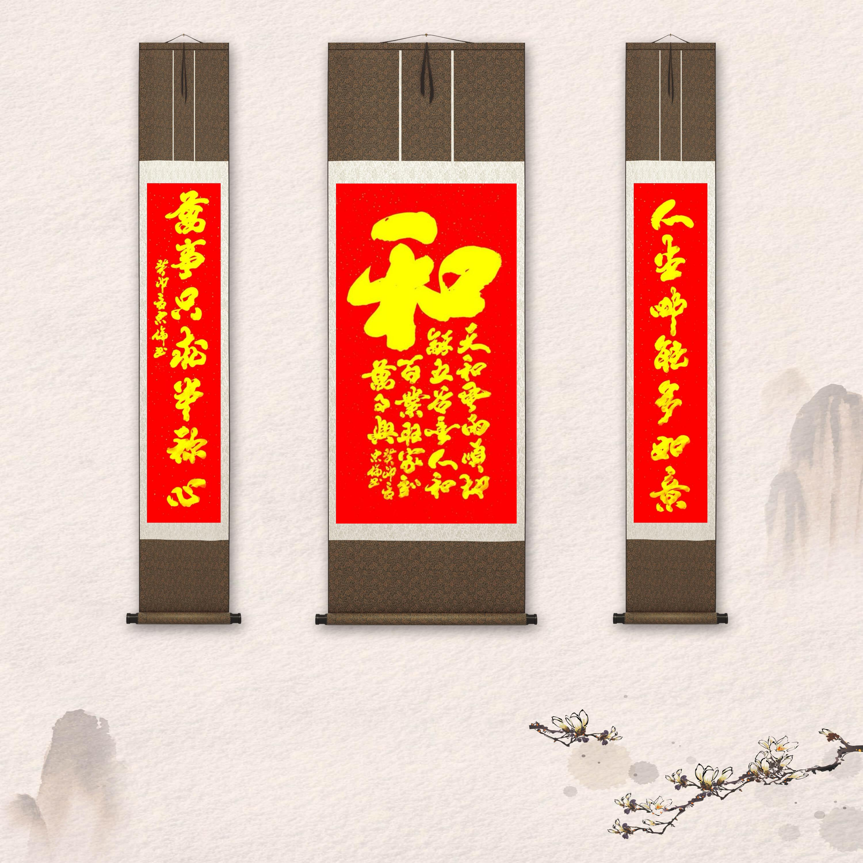 2023年作品,书法《和》138x68cm+对联《人生哪能多如意,万事只求半称心》138x34cmx2