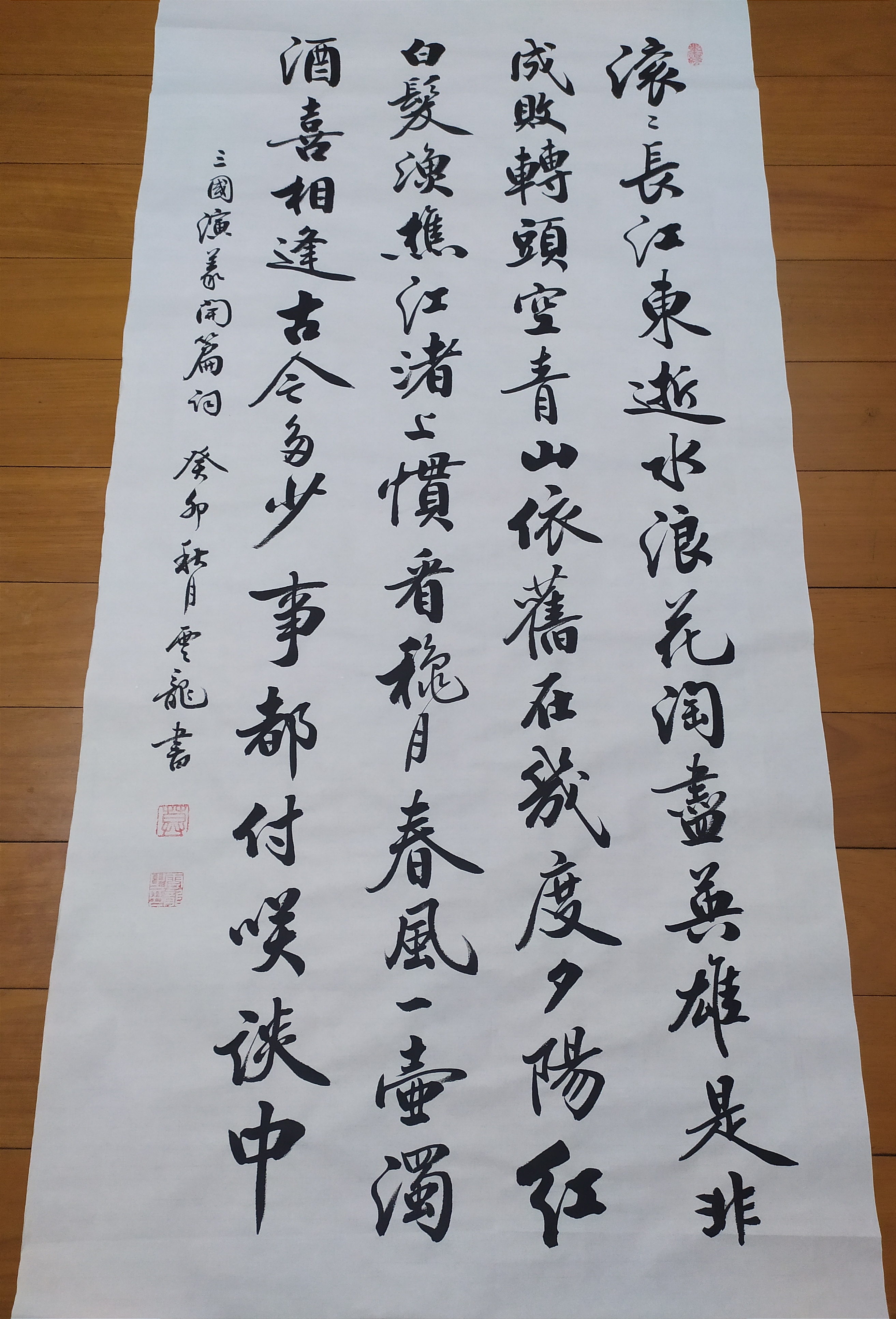 2023年作品,书法《临江仙-滚滚长江东逝水》138x68cm