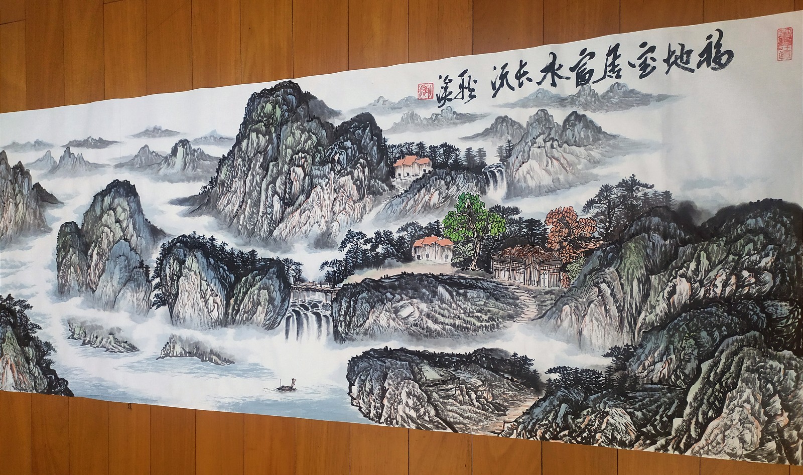 2023年作品,国画:福地宝居富水长流180x70cm