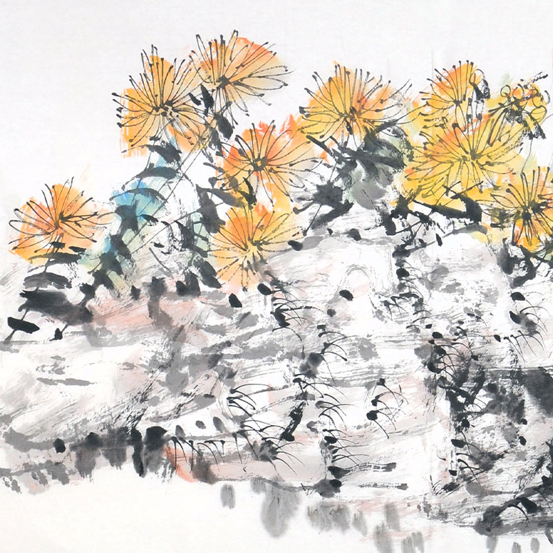 附合影 北京美协名誉主席 王明明【陶渊明赏菊图】F1566