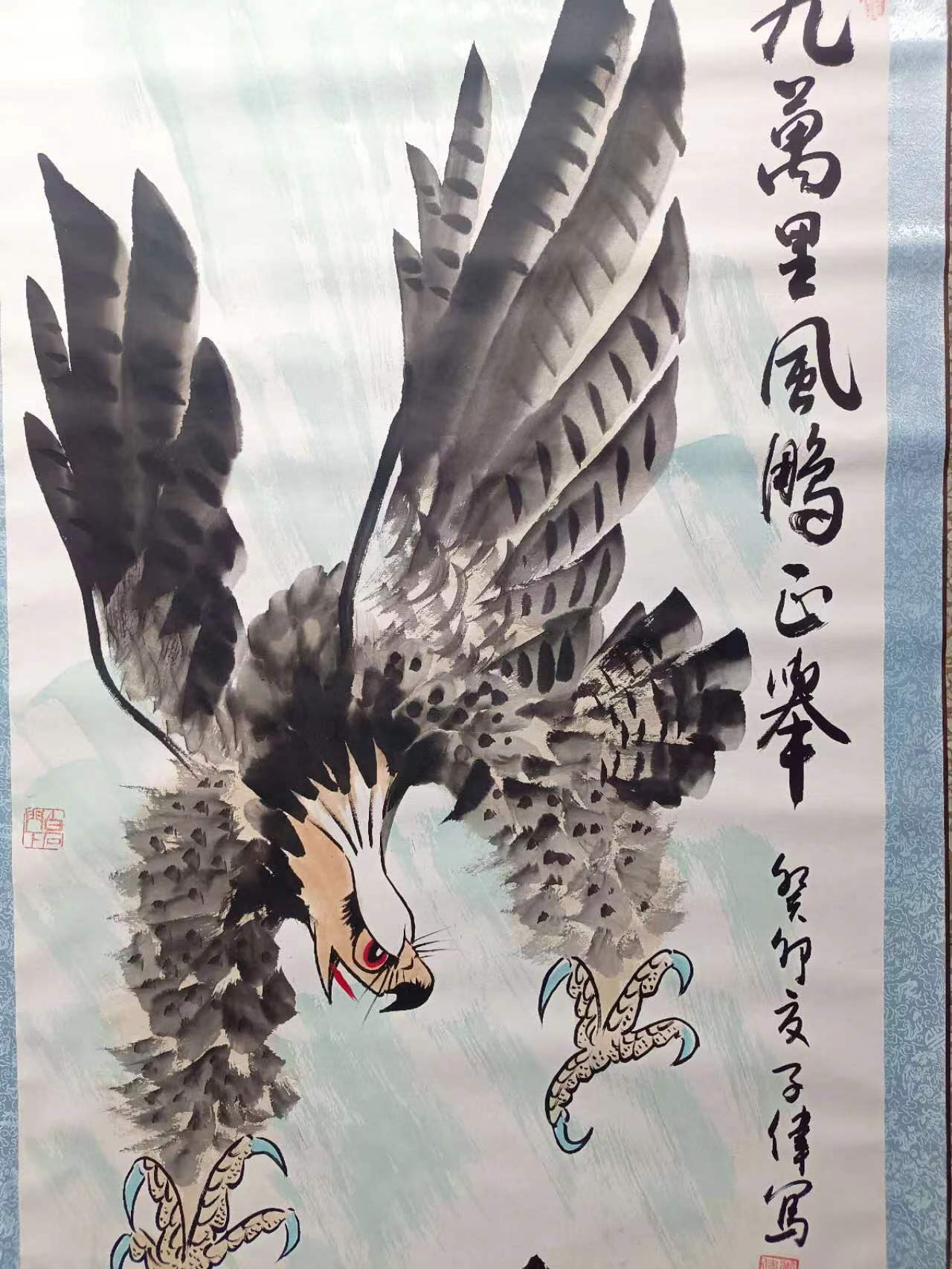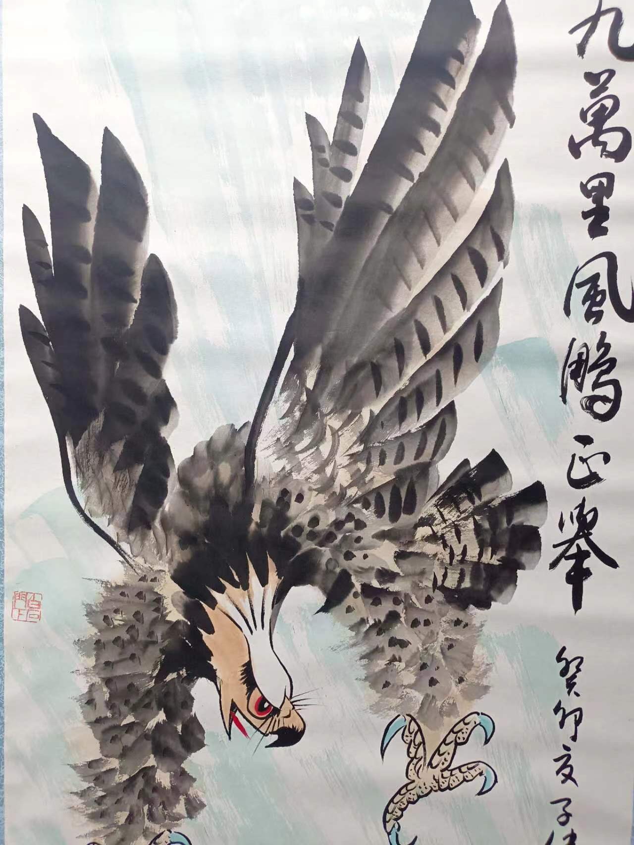 这幅字画寓意勉励他人或者表示正要一展宏图,事业,家庭顺风顺水,挂在客厅,书房,领导办公室里,酒店,茶楼等场合,可以展现自己的内心的壮志,还可以为空间增添一种独特的艺术气息,华为老总任正非就收藏,这幅画在雅昌拍卖会上150万成交,他的作品多次上拍到1百多万