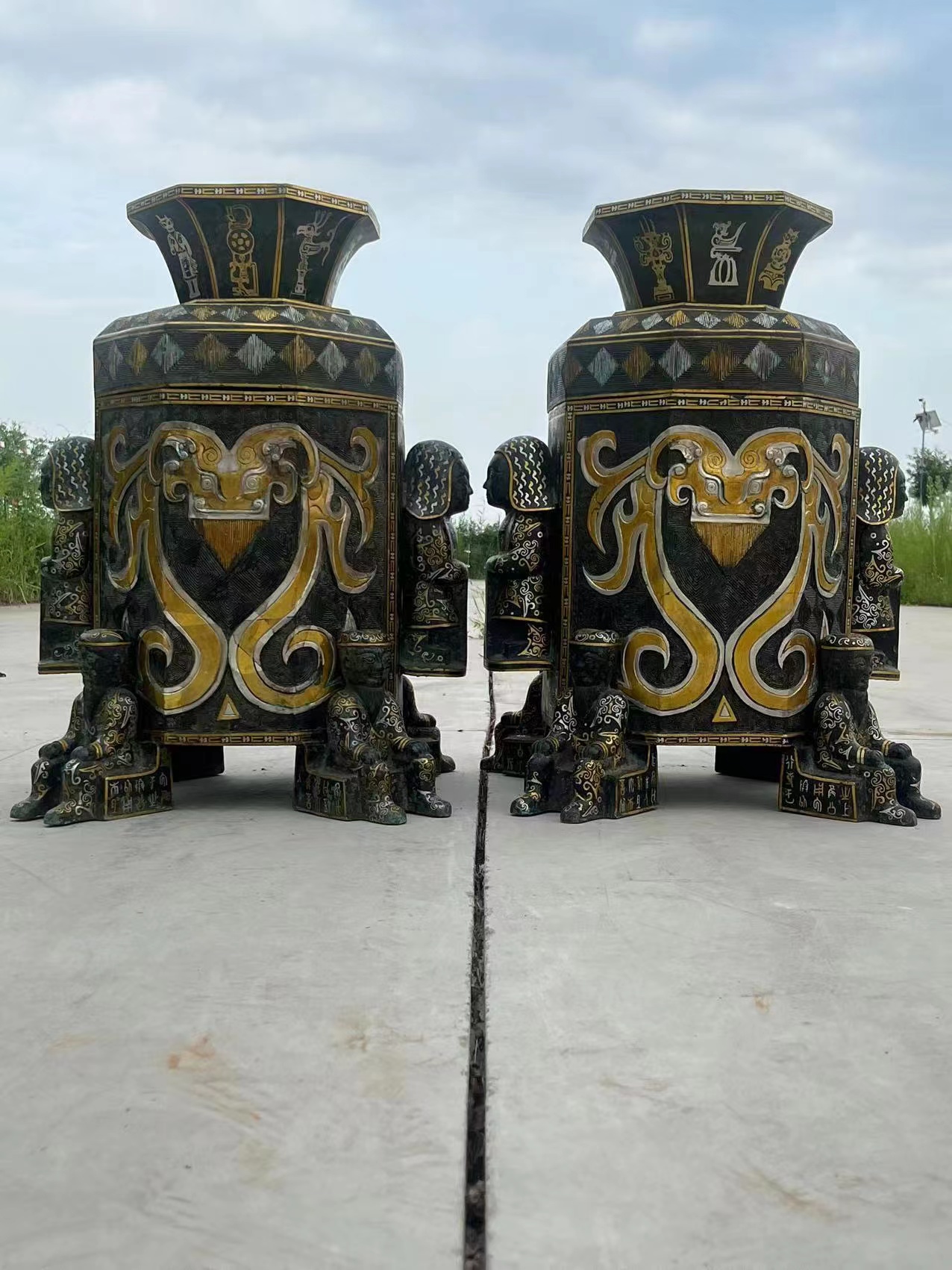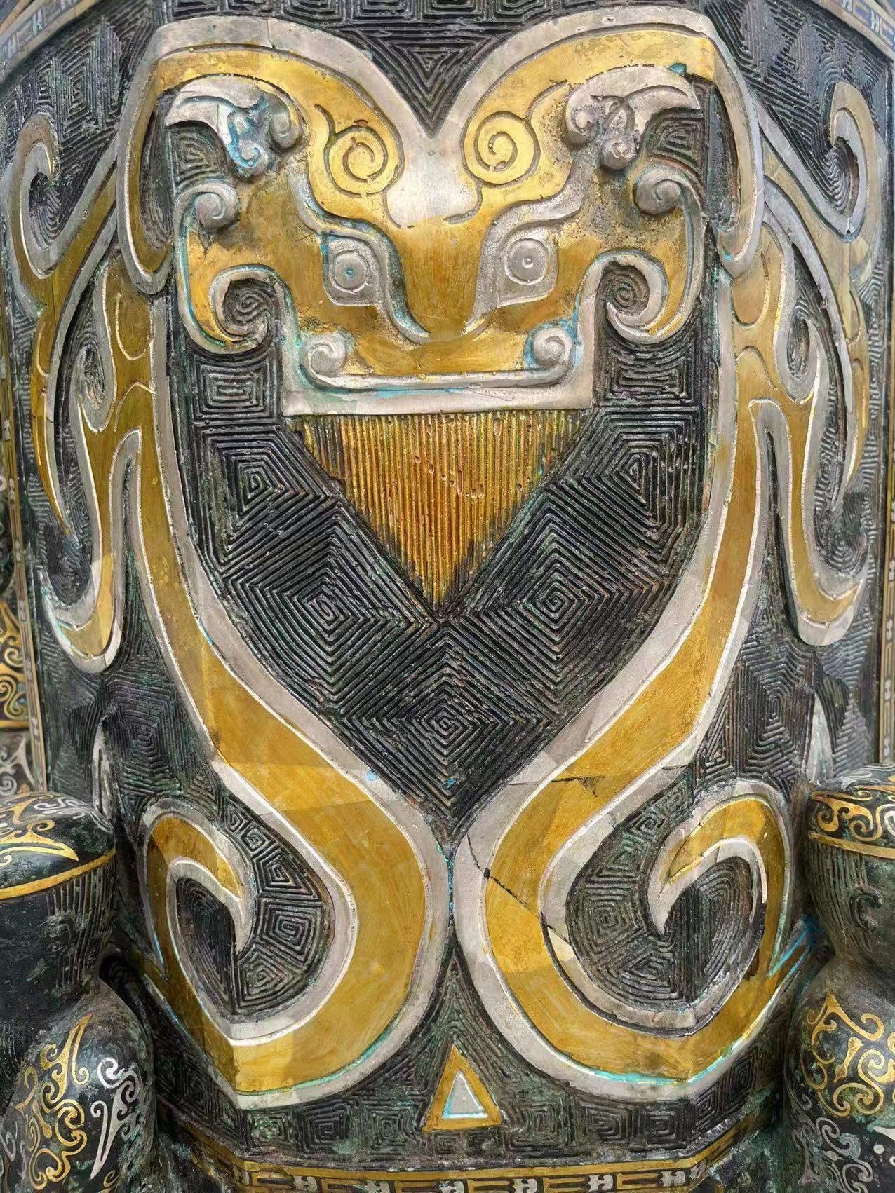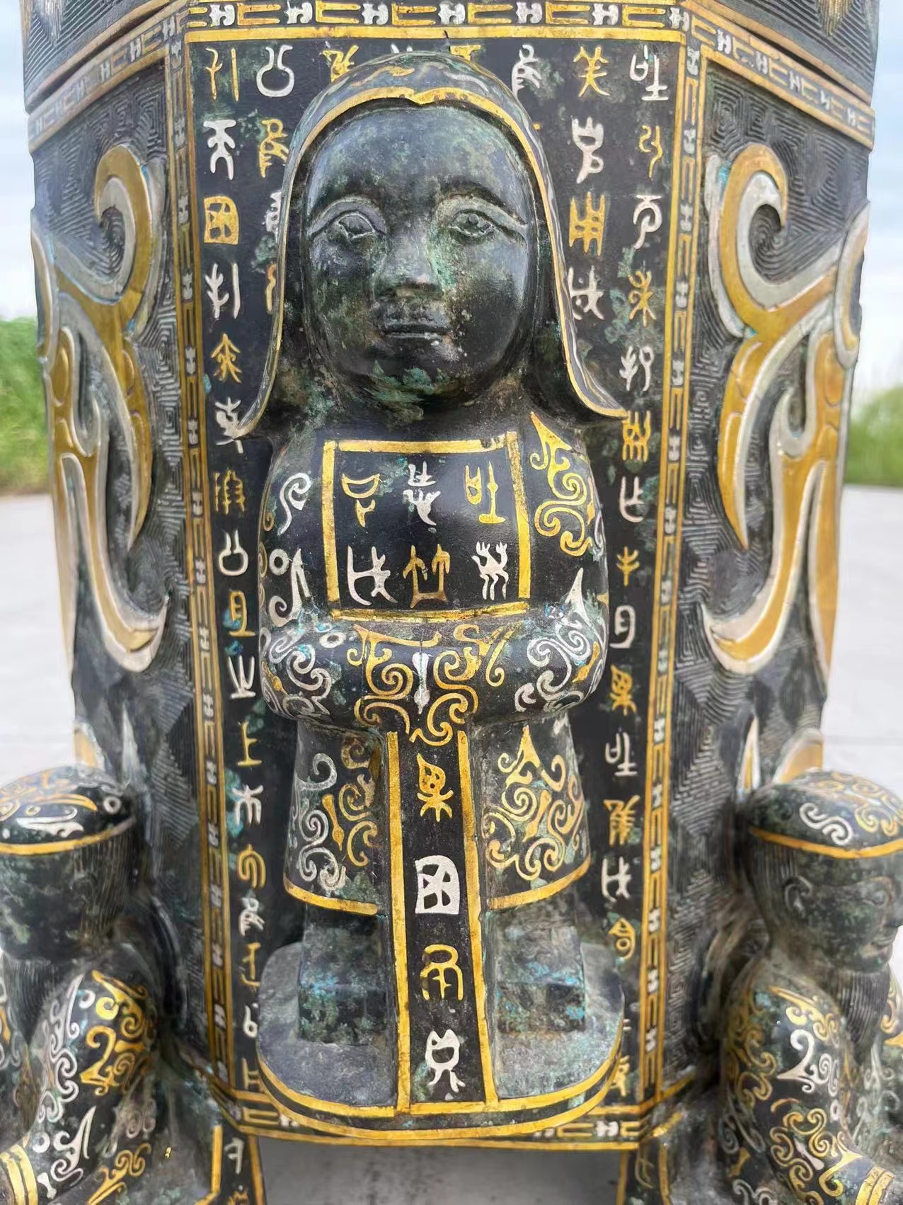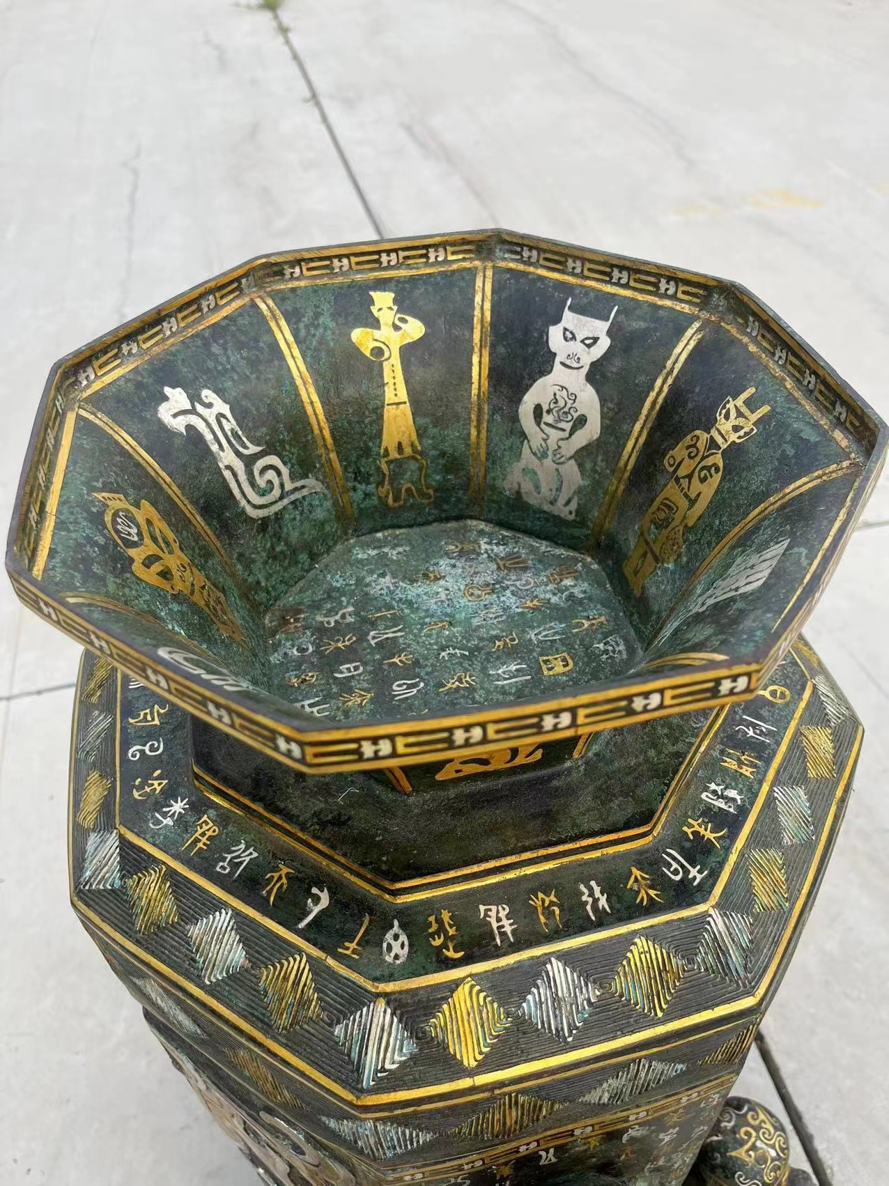 青铜搓金搓银刻铭文粮仓摆件,器型漂亮,图案精美,工艺精湛,贵气十足!锈迹自然,收藏佳品!