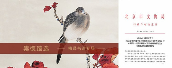 “崇精求真、行德笃信”。北京崇德拍卖是艺术品线上线下同步经营模式的先驱者,意在引导传统拍卖与新技术的融合,推动“拍卖+互联网”建设,进一步拓展拍卖行业发展的新空间,为更多的社会机构和个人提供便利、优质服务。打造市场信誉度、服务功能强、社会效益好的艺术品拍卖品牌企业。