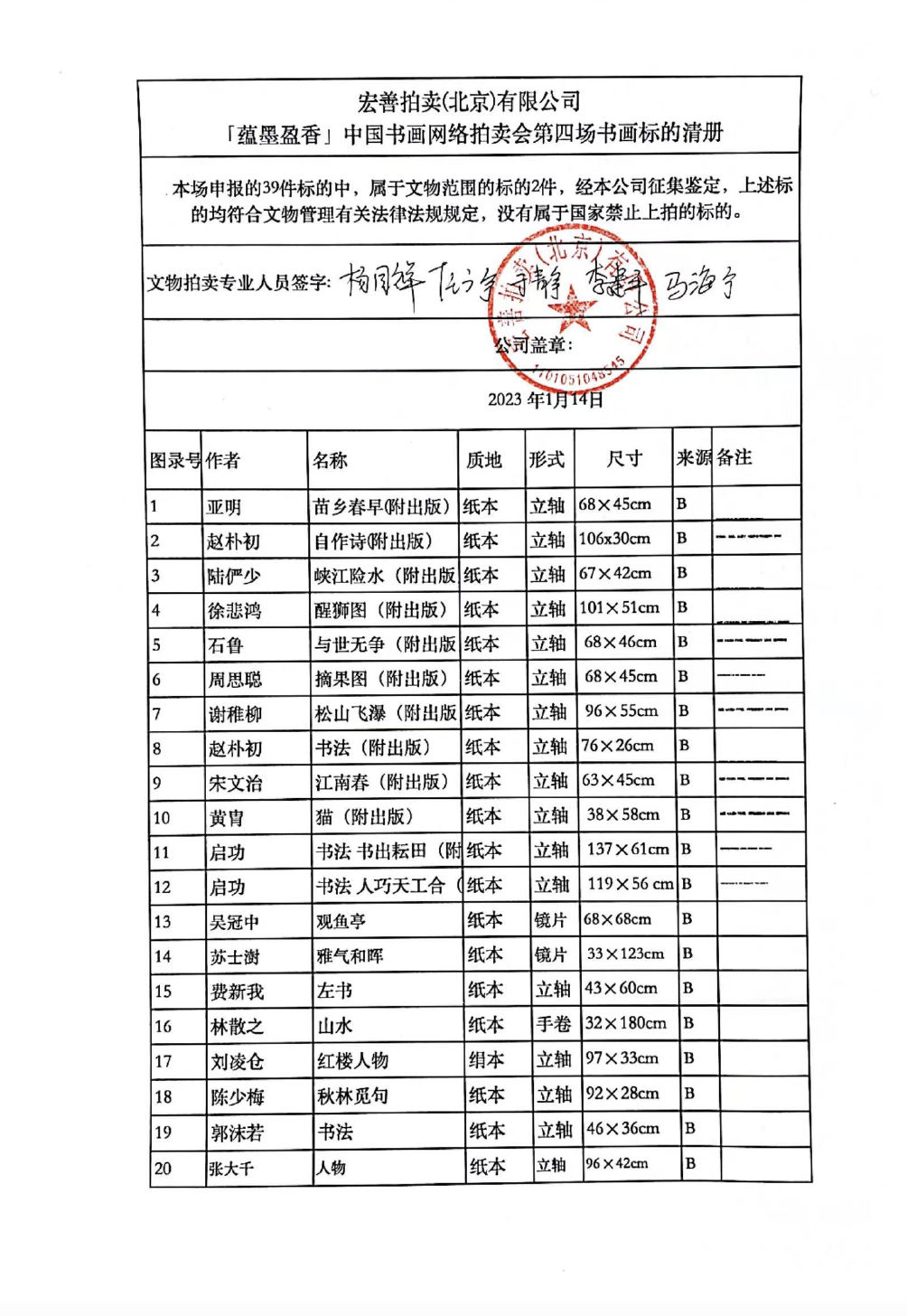 • 专场名称:蕴墨盈香——文物局备案中国名家书画专场(四)